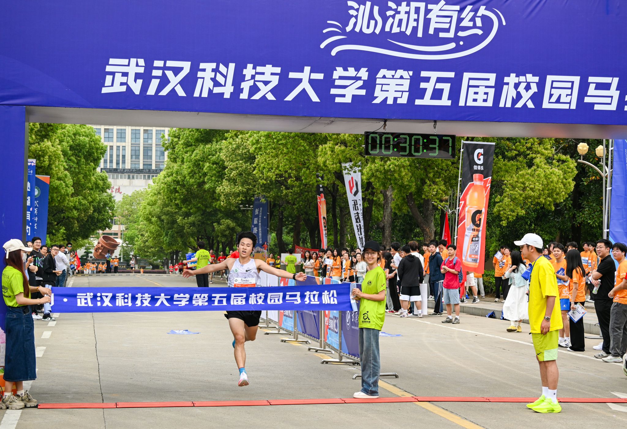 刘时新致辞,校园马拉松不仅是一场体育盛会,更是一堂生动的成长课。运动健儿们在奔跑中锤炼意志,在挑战中超越自我,这既是对武科大钢铁品质的传承,也是琉璃神社 响应“健康中国”号召,落实“五育并举”、深化‘三全育人’的生动实践。