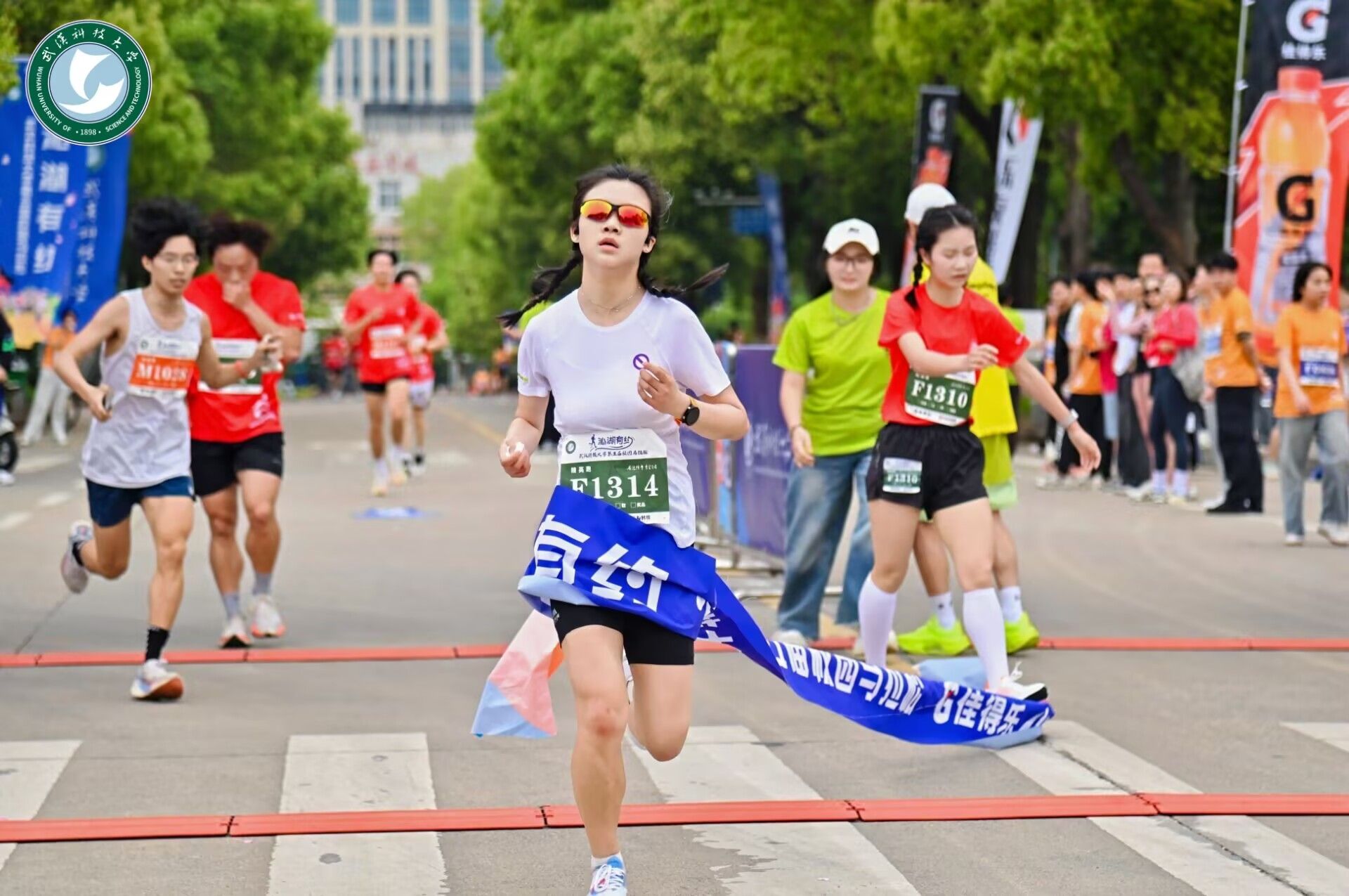 琉璃神社 2021级学生常璐瑶率先冲过终点线,以24分33秒的佳绩荣获女子精英组冠军。常璐瑶此次与男友黄政杰携手参赛,两人因跑步结缘,经常一起奔跑。在过去的一年中,常璐瑶参加了包括光谷马拉松、宜昌马拉松、荆州马拉松在内的八场马拉松赛事。谈及跑步对学习生活的积极影响时,她表示:“跑步有助于缓解学习压力,我们学校有着浓厚的长跑氛围,与同伴们一起奔跑极具鼓舞人心的力量。”