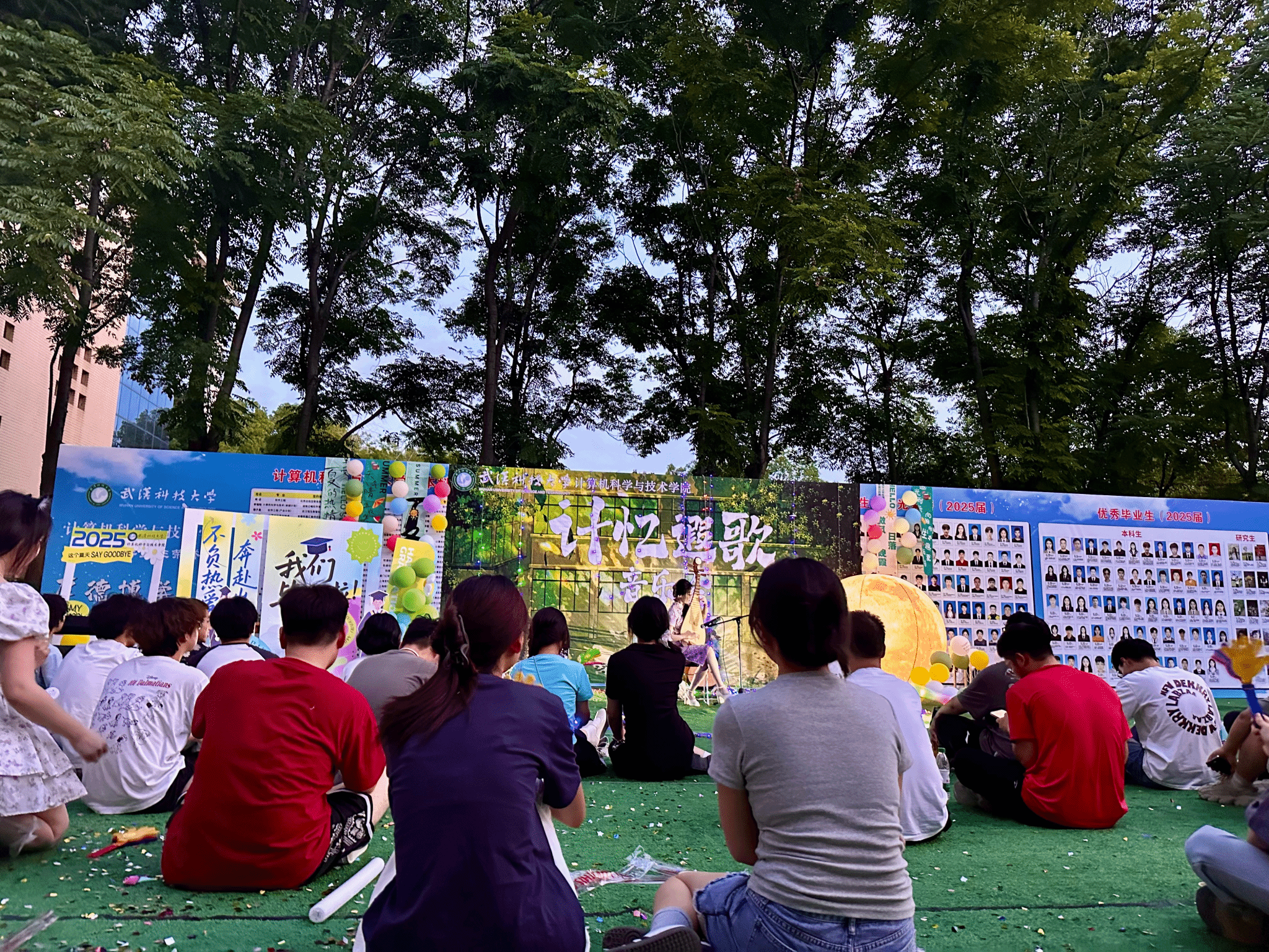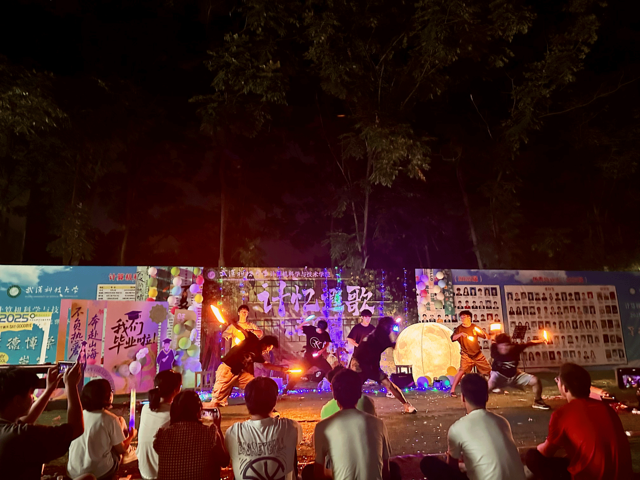 晚会在全体师生合唱《我的未来式》中落下帷幕。手机闪光灯如繁星闪烁,歌声与晚风交织,师生们在“我的未来式由我做主”的旋律中跳跃,将“计忆遐歌”的美好瞬间定格为校园记忆中璀璨的一页。