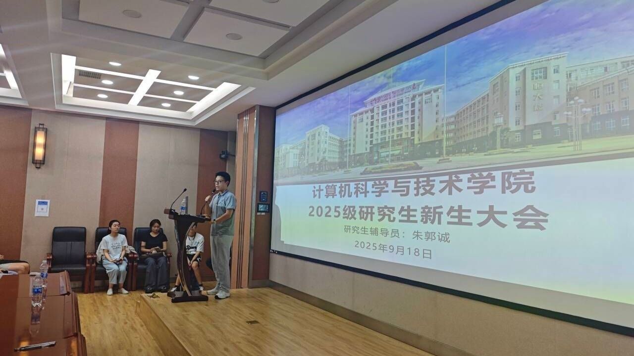 朱郭诚则围绕日常管理、职业发展与实践竞赛展开讲解。他具体介绍了请假审批要求、校外住宿条件及申请流程,帮助新生快速熟悉校园管理细则;同时分析了当前计算机专业的就业趋势,强调学院与小米、金山等企业建立的校企合作项目,鼓励大家积极参与企业的暑期实习,表现优秀者有机会获得直接录用。此外,他还特别鼓励新生积极参加中国研究生创新实践系列大赛,尤其是其中的人工智能、网络安全和操作系统开源创新大赛。如果在这些赛事中取得良好成绩,可直接认定为毕业所需的学术成果。