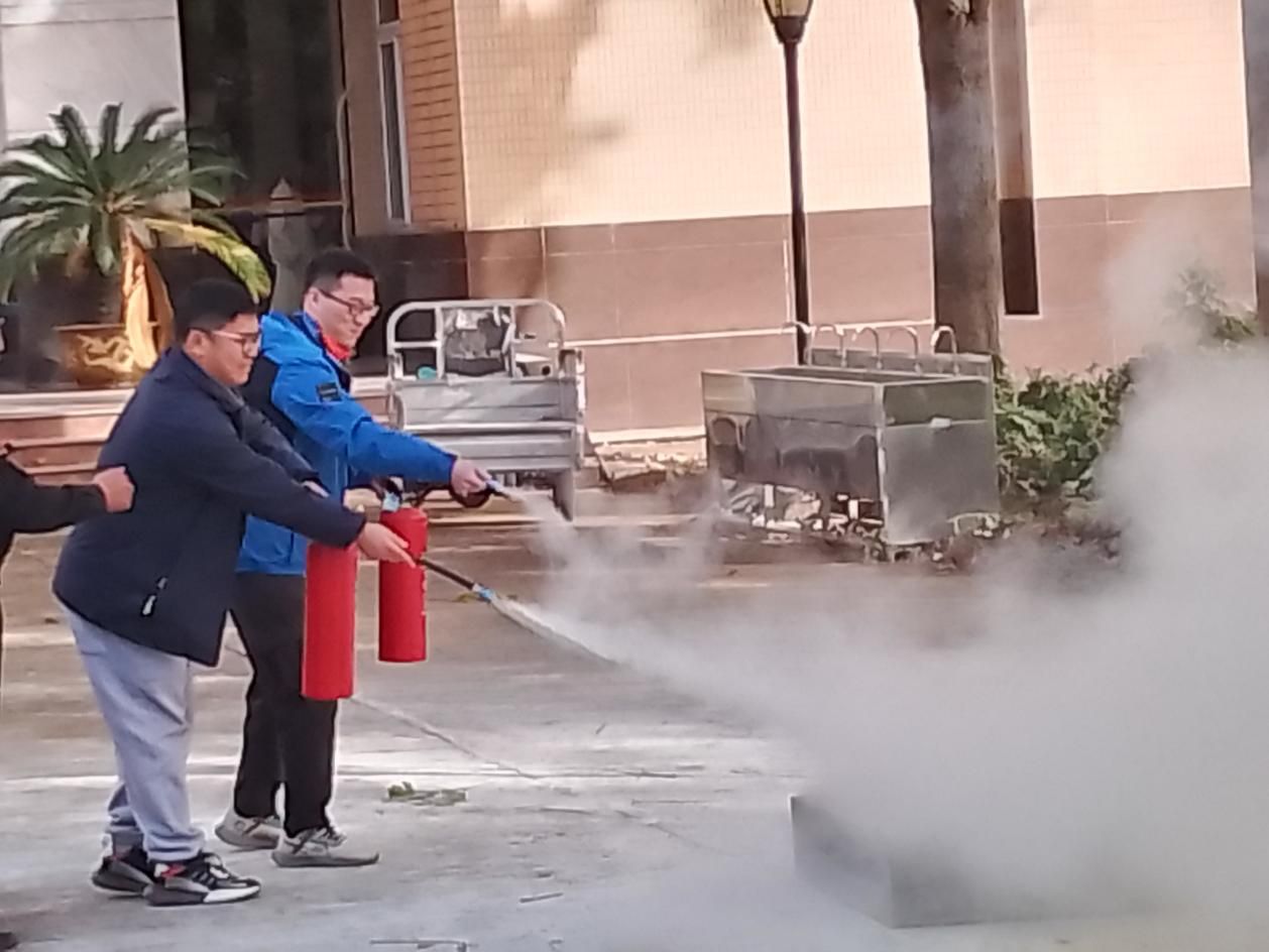 讲座结束后,在一楼小广场开展了消防器材的使用演练。保卫处工作人员详细讲解了不同类型灭火器、消防面具、灭火毯等器材的使用方法,在场师生逐一参与实践演练。通过培训和演练,师生进一步增强了消防安全的知识,切实提升了预防及应对火灾的技能。