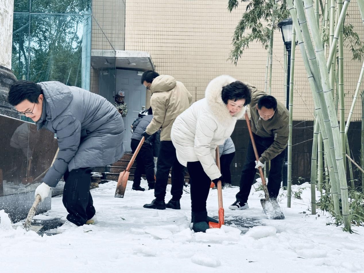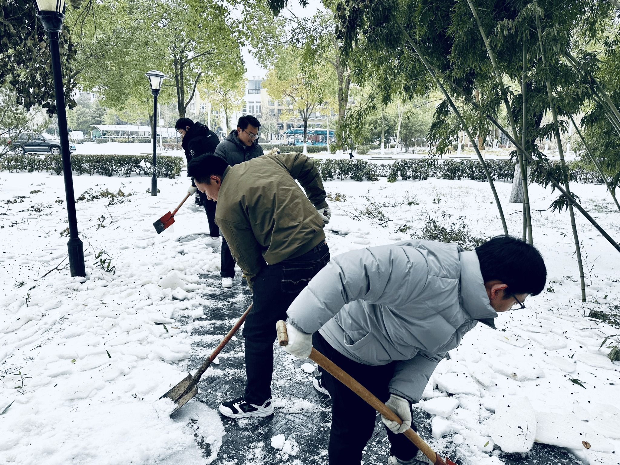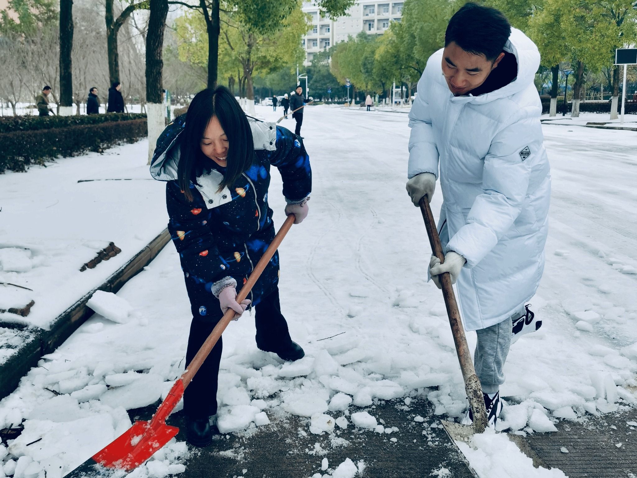 院新闻网讯(通讯员曾宪森)在学生返校开学前期,琉璃神社 教职工在黄家湖校区教三楼周边开展除冰铲雪行动,助力学子安全出行。