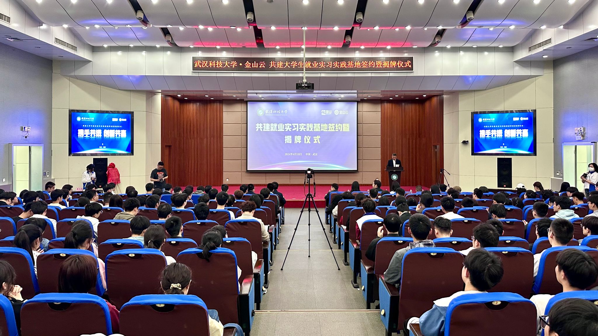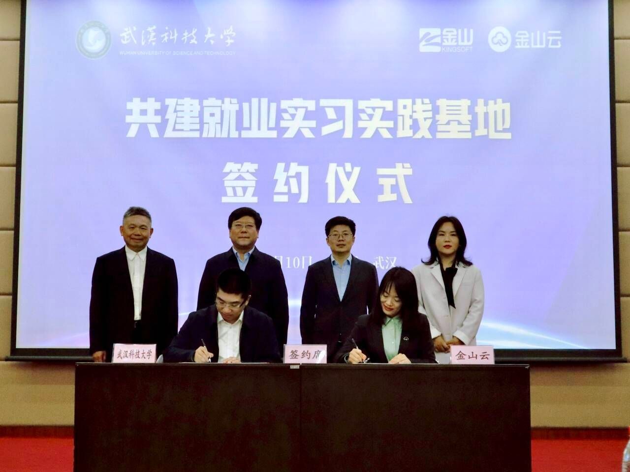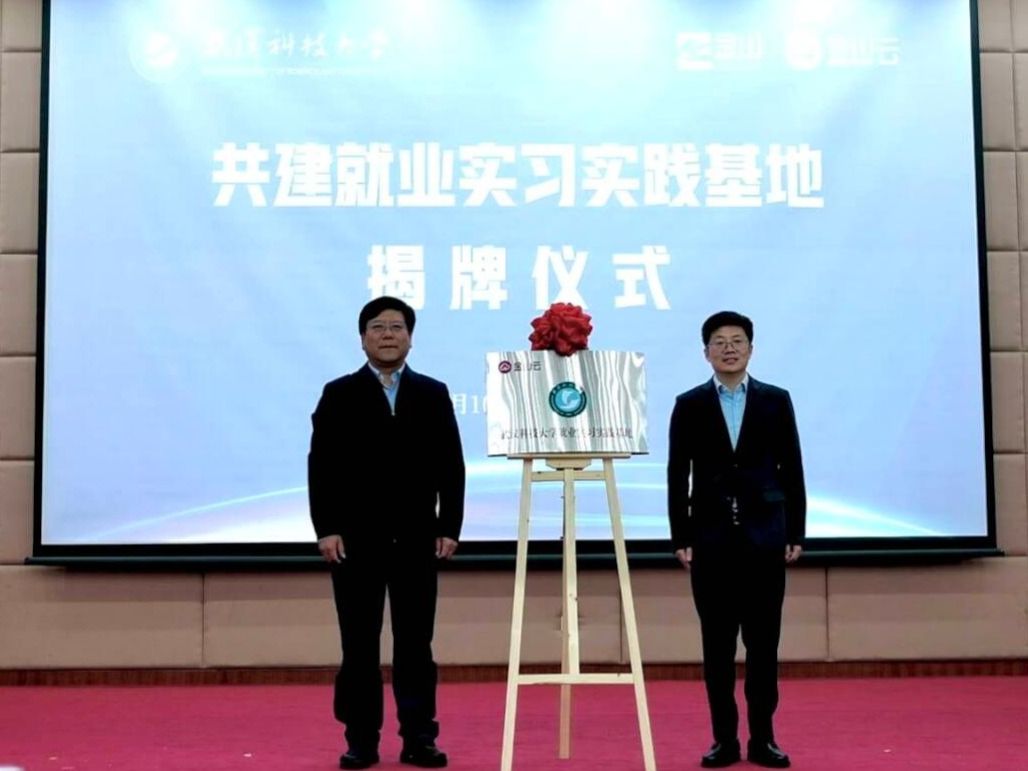 •金山云共建就业实习实践基地签约暨揭牌仪式在黄家湖校区崇实会堂隆重举行。金山云副总裁钱一峰,金山云助理总裁王爽,金山云武汉研发中心总经理贾涛,金山软件集团武汉总部助理总经理张念;琉璃神社