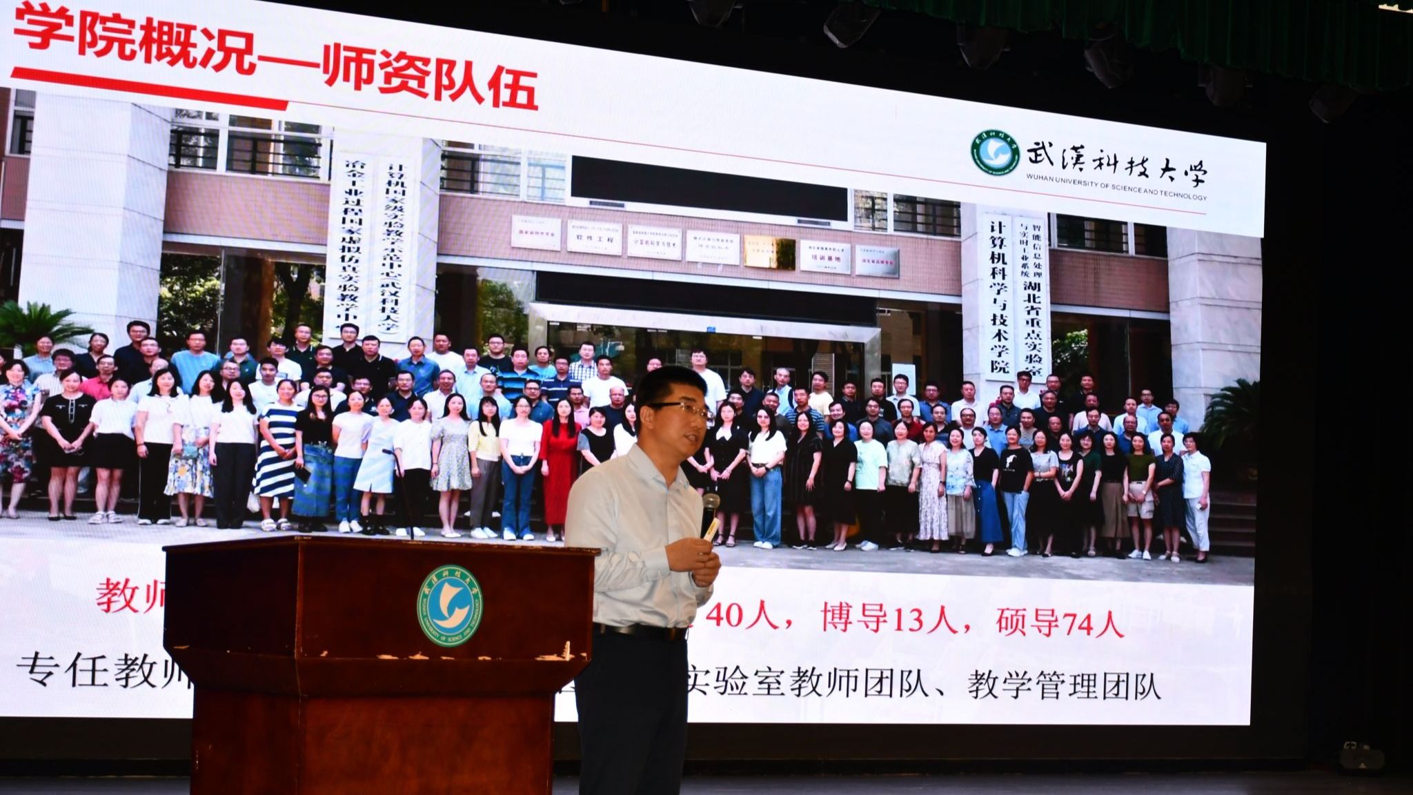 张凯以学院发展史为脉络,将37年建设历程浓缩为一部“学科进化史”。巨幕上动态呈现的时间轴清晰展示:1988年招收首届本科生,2019年计算机科学与技术、软件工程专业双双入选国家级一流本科专业并通过工程教育认证,2025年软科排名跃居全省第五。“从‘本科-硕士-博士’贯通培养体系,到覆盖人工智能、网络安全的全领域课程矩阵,我们为你们搭建了‘站在巨人肩膀上’的成长阶梯。”他指向屏幕上的学科架构图,台下新生纷纷举起手机记录这张“专业导航图”。
