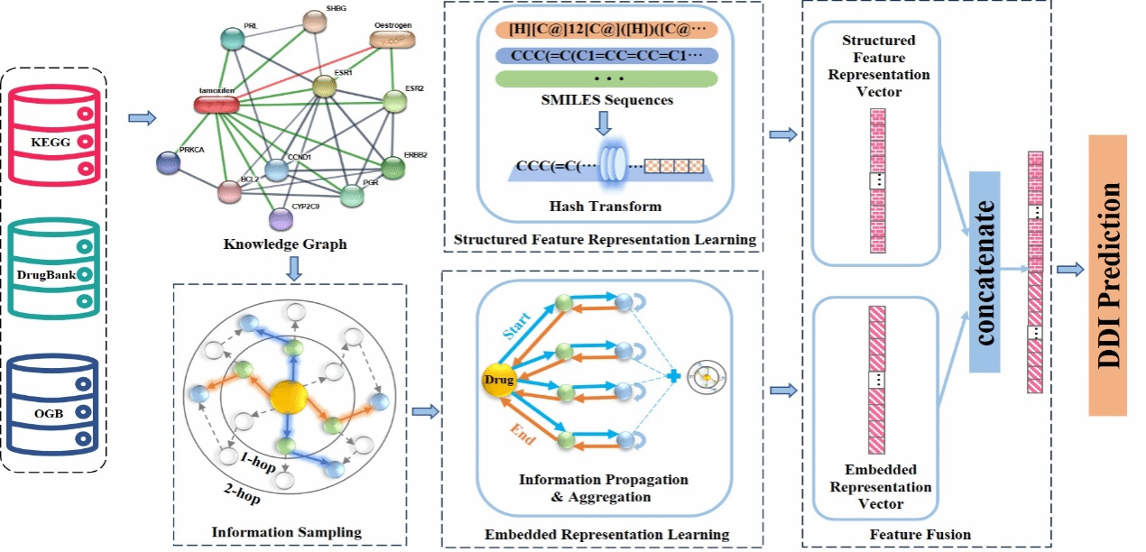 药物-药物相互作用(DDI)的准确预测对于提高药物开发效率、确保联合治疗的安全性具有至关重要的意义。针对这一问题,该论文创新性地提出了一种基于知识表示学习和特征融合的DDI预测方法——KGRLFF。该方法充分利用了医学知识图谱和药物分子结构中的丰富信息,实现了对DDI的高效预测。