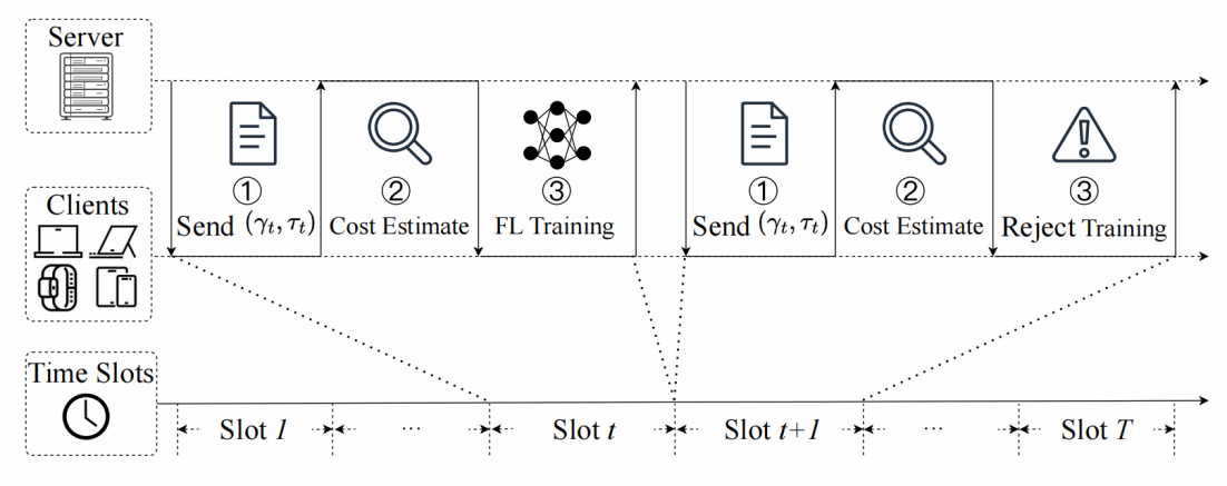 在线联邦学习是一种实时学习范式,它在每位随机到达的客户端参与后立即执行模型聚合。为了激励客户端积极参与,提供合理的补偿以抵消其训练资源消耗至关重要。然而,设计激励机制受到在线联邦学习“双边不完全信息”(即资源动态变化的限制:服务器无法获知客户端动态变化的计算资源,而客户端也不了解服务器实时分配的通信资源)制约。为实现按到达顺序为每位客户端动态提供奖励以激励其参与训练,本文设计了一种适用于双边不完全信息环境下的在线联邦学习动态贝叶斯劝说定价机制,称为 DaringFed。具体而言,首先,将服务器与客户端之间的交互建模为贝叶斯劝说博弈中的一个动态信号传递与定价分配问题,并进一步证明该博弈存在唯一的贝叶斯劝说纳什均衡。然后,在单边信息不完全的设定下,推导出DaringFed的最优设计方案,并在双边不完全信息的背景下,给出了具有特定误差界的近似最优设计。最后,基于真实数据集的实验证明,DaringFed可将模型精度与收敛速度提升16.99%;基于仿真数据集的实验进一步验证了对未知量的估计收敛性以及DaringFed在提升服务器效用方面的有效性,提升幅度最高可达12.6%。