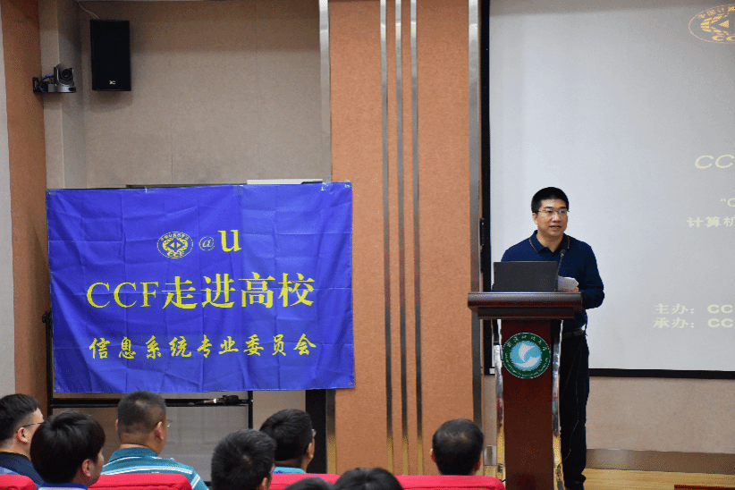 的发展历程及取得的成就,并预祝本次CCF走进高校活动取得圆满成功。本次活动邀请到了国内信息系统领域的知名学者,包括CCF信息系统专业委员会主任东北大学于戈教授,CCF信息系统专业委员会执行委员东北大学谷峪教授。本次报告内容主要围绕“分布式图神经网络”热点课题作前沿学术报告。