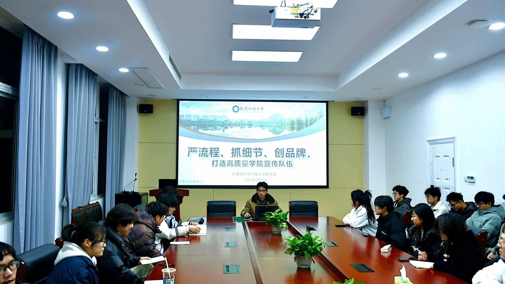 会议最后,曾宪森总结强调,宣传工作不仅是任务,更是展现学院形象、传递正能量的重要途径。每位学生干部都应具备主人翁意识,主动思考如何为学院宣传工作贡献力量。“宣传部不是‘沙场练兵’,而是‘全员精锐’!每个人单拎出来都能独当一面!”他号召全体学生干部用好平台优势,成为学院故事的“第一导演”,共同书写学院发展的新篇章。