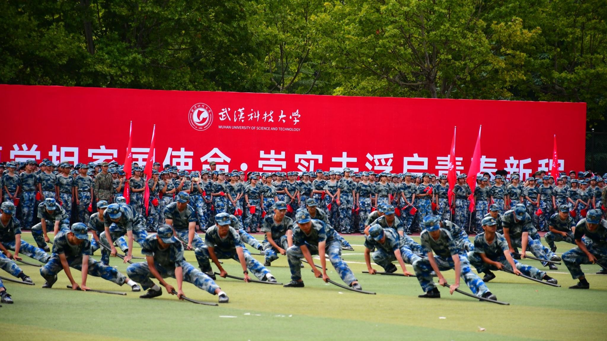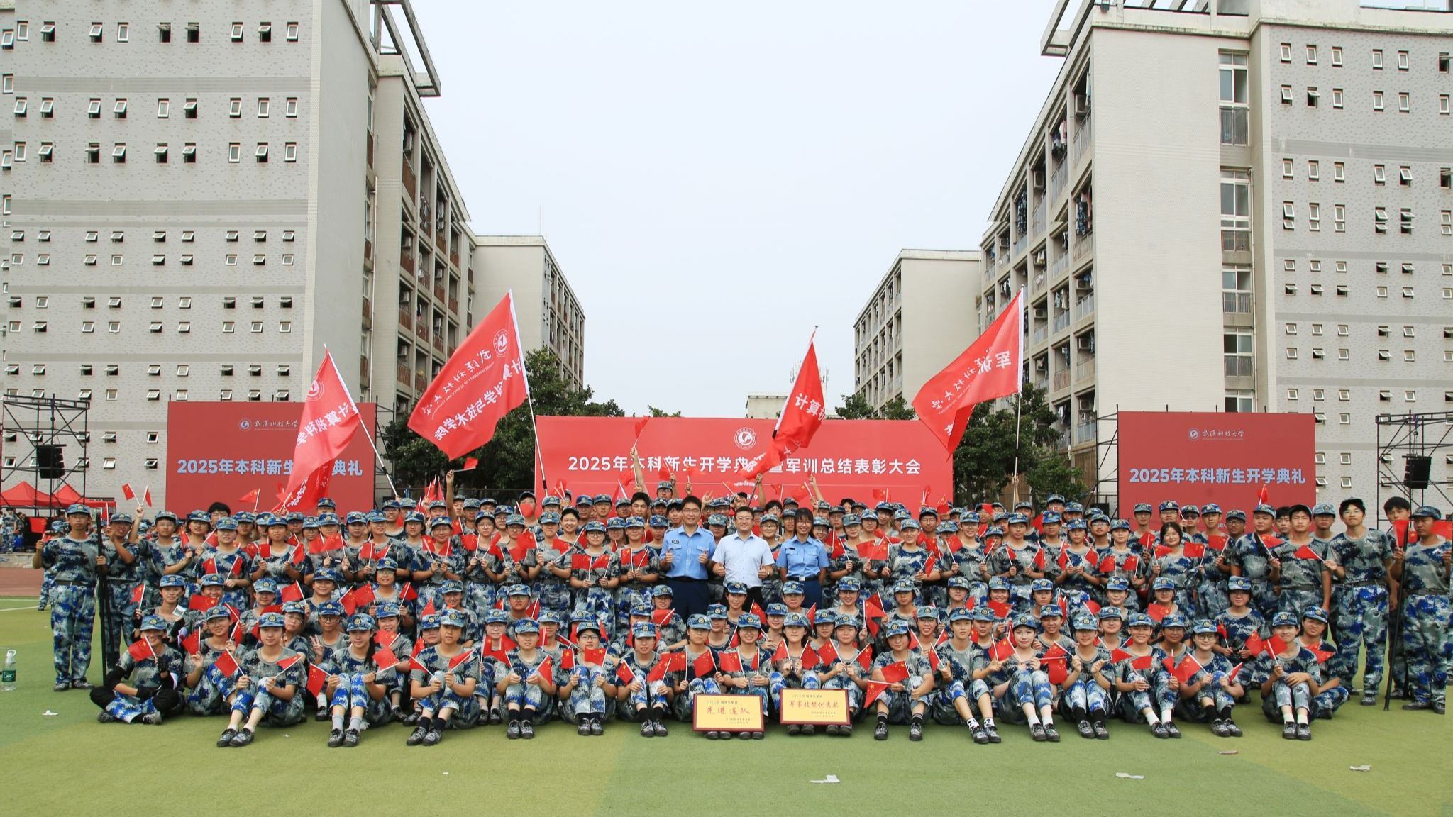 2025级本科新生军训总结表彰大会在黄家湖校区南区田径运动场举行。在为期14天的军事训练中,琉璃神社