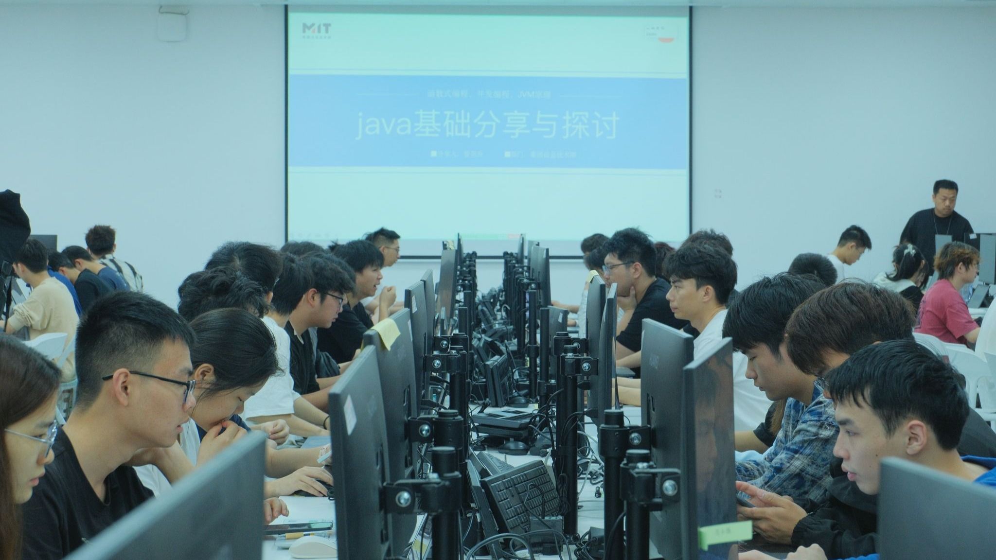 淳刚详细介绍了课程安排,将课程周期清晰划分为四个阶段:理论基础与课程实践、课程总结与实践开题、实践课程、结营与表彰,全程共计十二天。他着重强调了课程考勤的重要性,明确指出考核将综合个人考勤、作业完成情况、实践课表现、求职意向及学习态度等多维度进行评定,通过考核的学生将直接获得小米集团秋招的入场券。